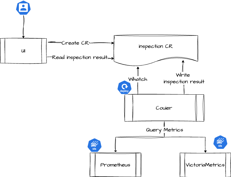 globalcluster. - Execute inspection task: The Courier component monitors the generation of inspection-type CRs and queries the monitoring components of each cluster for various metric data related to the inspection.