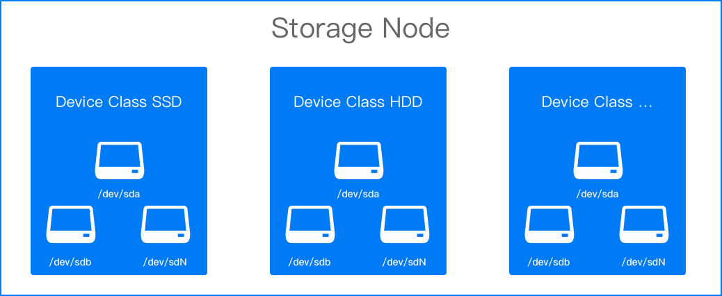 Device ClassEach device class corresponds to a group of storage devices with the same characteristics; it is recommended to name it according to the nature of the disks, e.g., hdd, ssd.